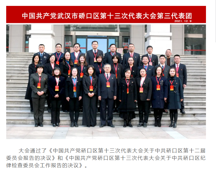 中國共產(chǎn)黨硚口區(qū)第十三次代表大會勝利閉幕